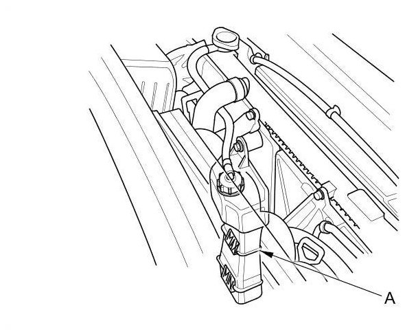 8. Fill the coolant reservoir to the MAX mark (A) with Honda Long Life Antifreeze/Coolant Type 2 .