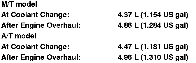 Engine Coolant Capacities (Including the coolant reservoir capacity of 0.44 L (0.116 US gal)):