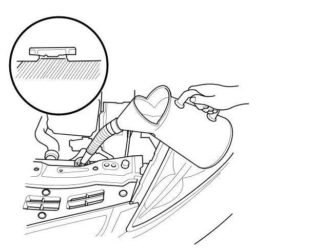 12. Turn off the engine. Check the level in the radiator, and add the recommended coolant, if needed.