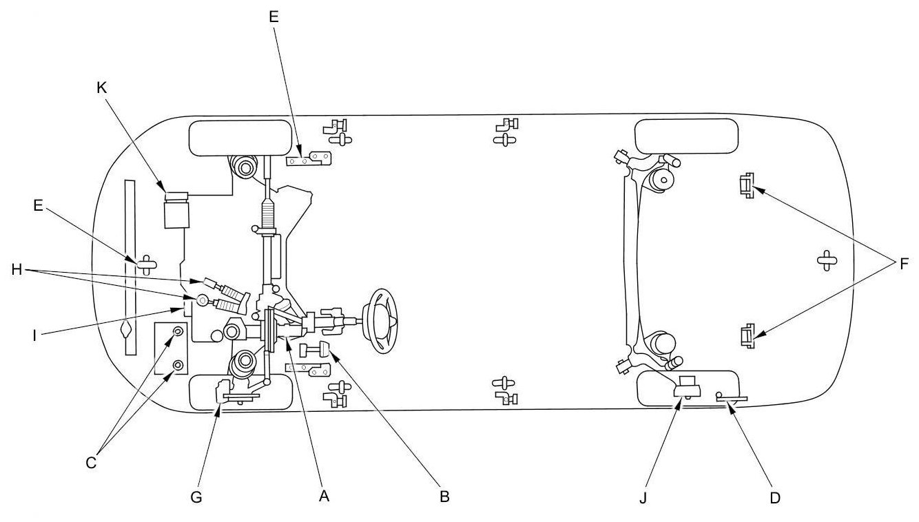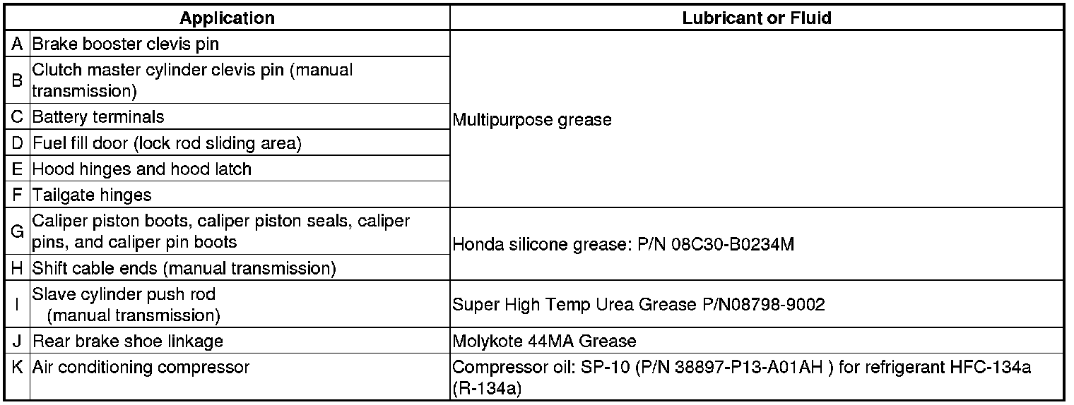 - Lubricate the following areas using the recommended lubricants and fluids.