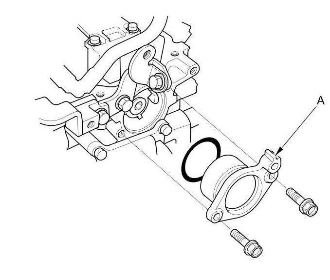 3. Install the camshaft thrust cover (A) with a new O-ring (B).