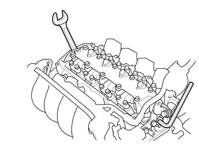 2. Hold the camshaft with an open-end wrench, then tighten the bolt.