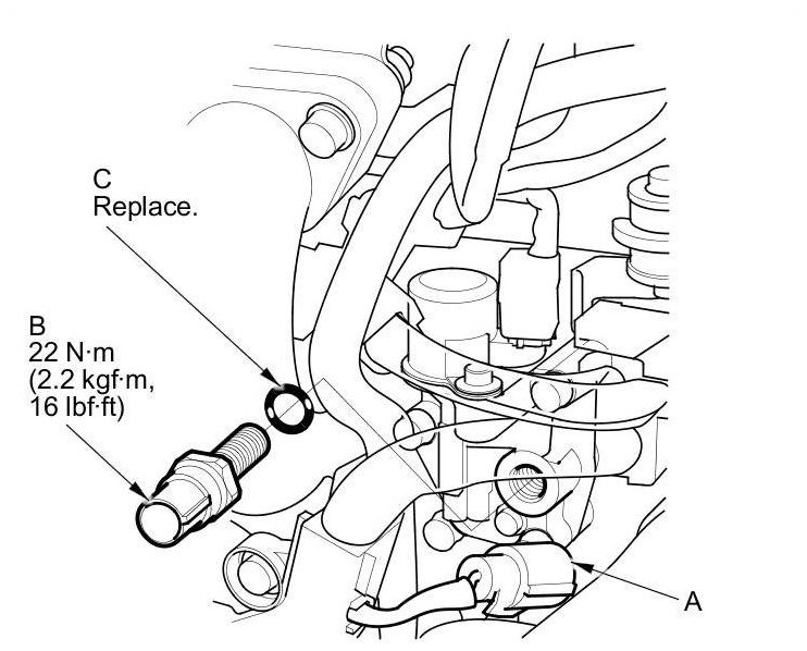 3. Install the parts in the reverse order of removal with a new O-ring (C).