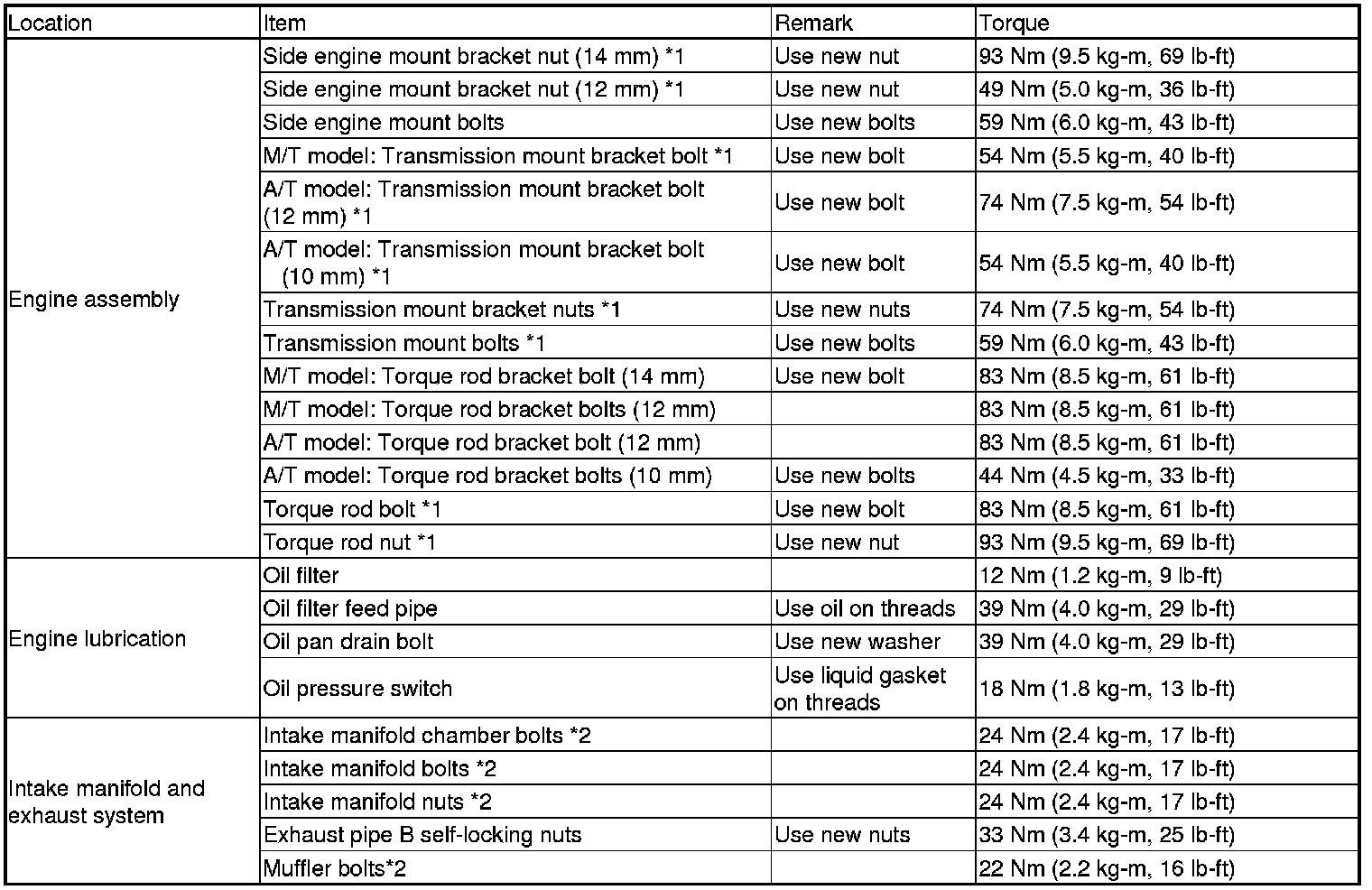*2: Follow the repair data procedures closely for torque, sequence, and special steps.