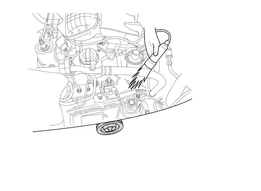 5. Start the engine. Hold the engine speed at 3,000 rpm with no load (in P or N) until the radiator fan comes on, then let it idle.