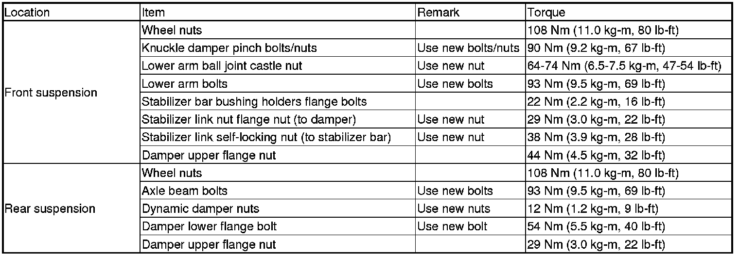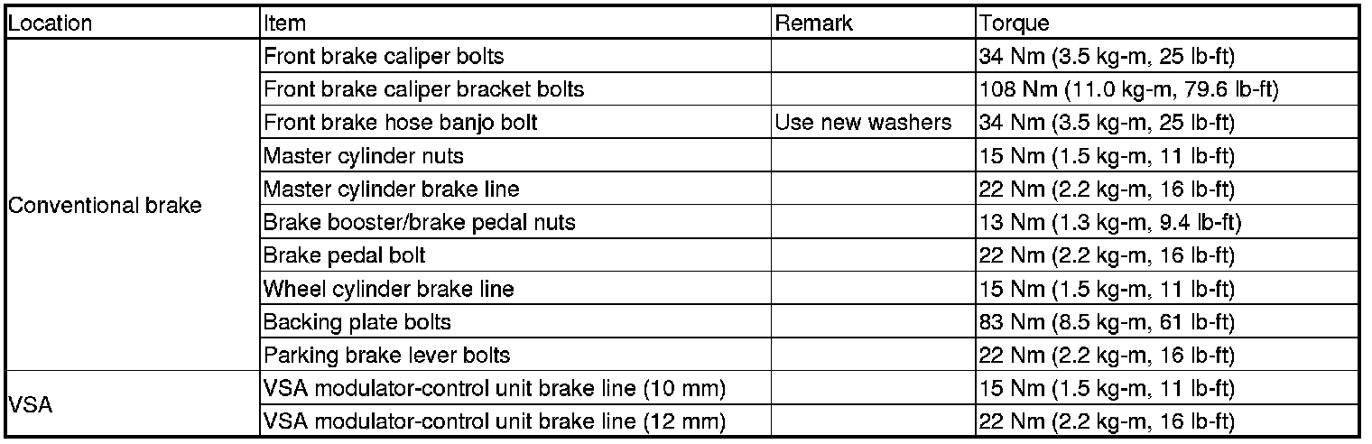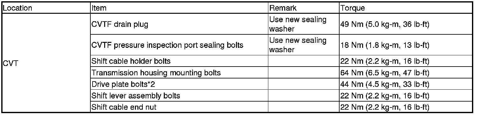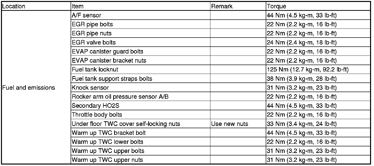 Torque Specifications