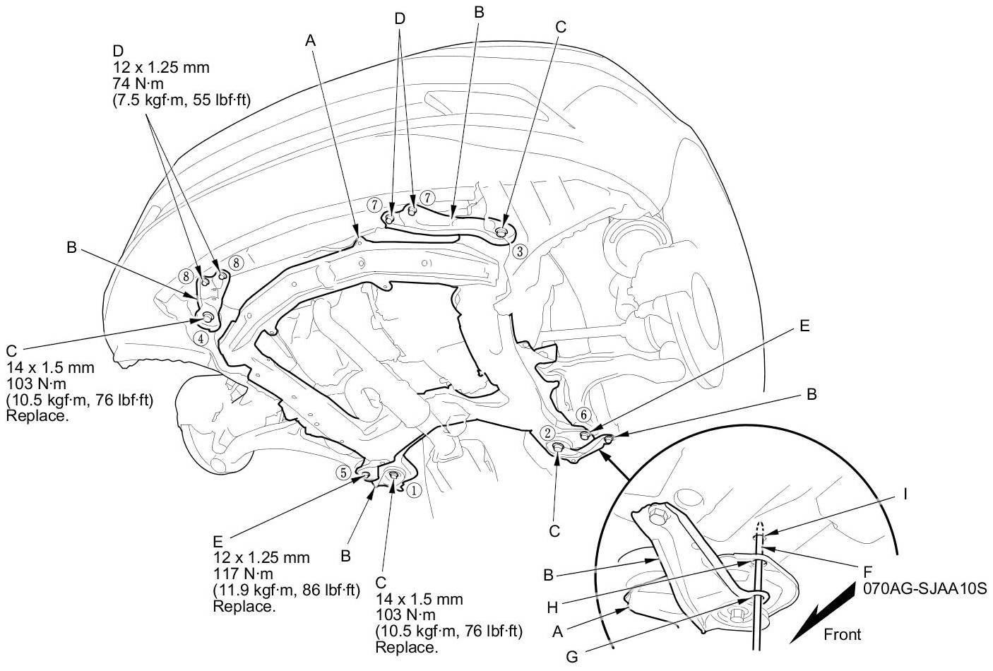 - After removing the subframe mounting bolts, be sure to replace them with new ones.