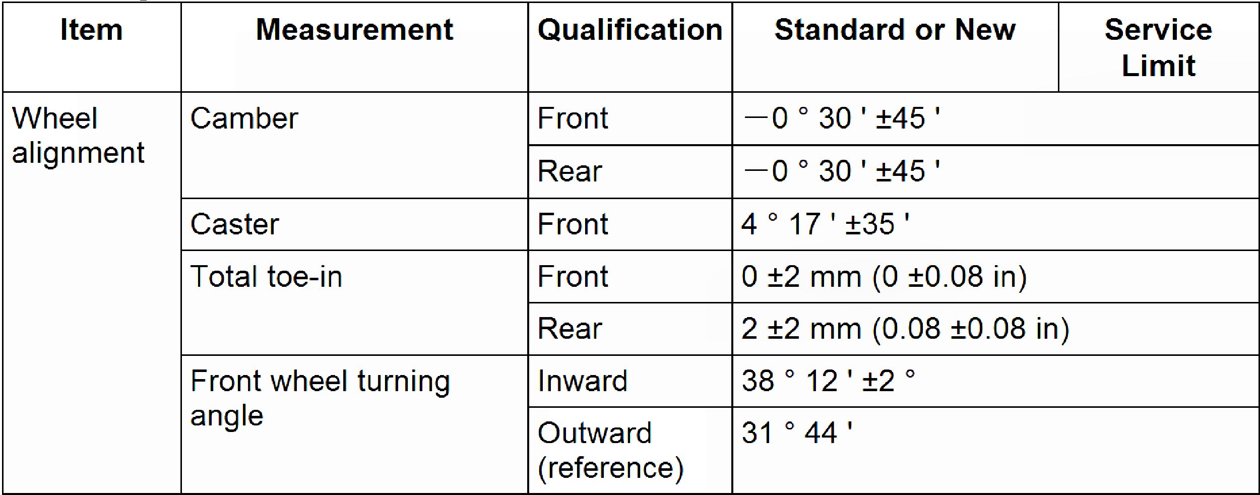 Wheel Alignment Specifications
