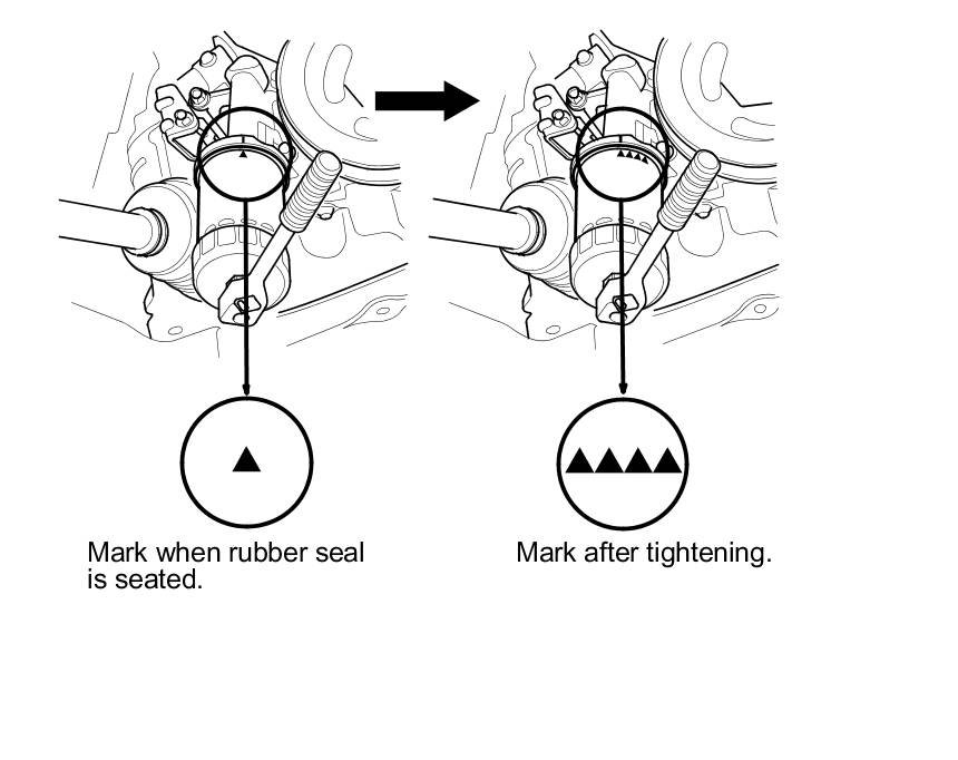 2. Inspect the filter to make sure the rubber seal is not stuck to the oil filter seating surface of the engine.