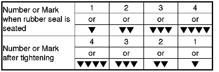 6. If four numbers or marks (1 to 4 or V to VVVV) are printed around the outside of the filter, you can use the following procedure to tighten the filter.