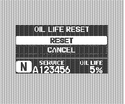 Reset the display after completing the required maintenance service. You will see "OIL LIFE 100%" on the information display the next time you turn the ignition switch to the ON (II) position.