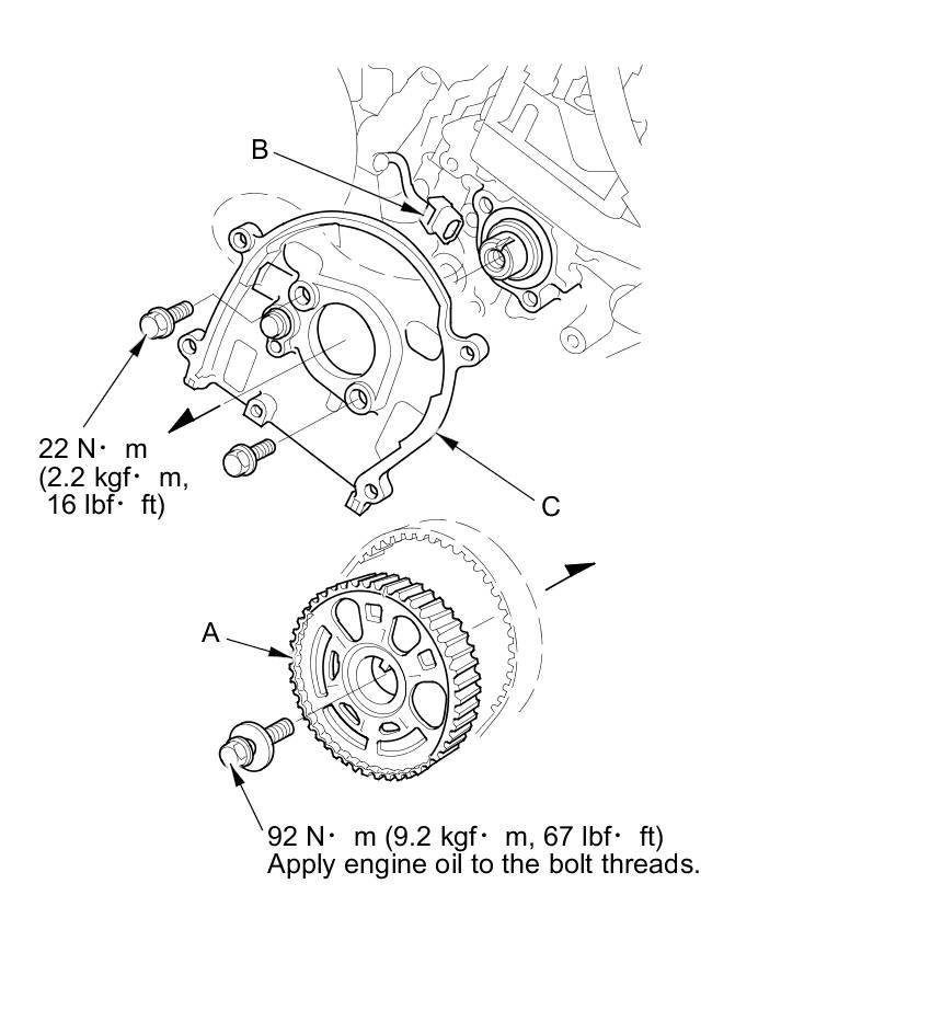 3. Disconnect the CMP sensor connector (B), then remove the back cover (C).