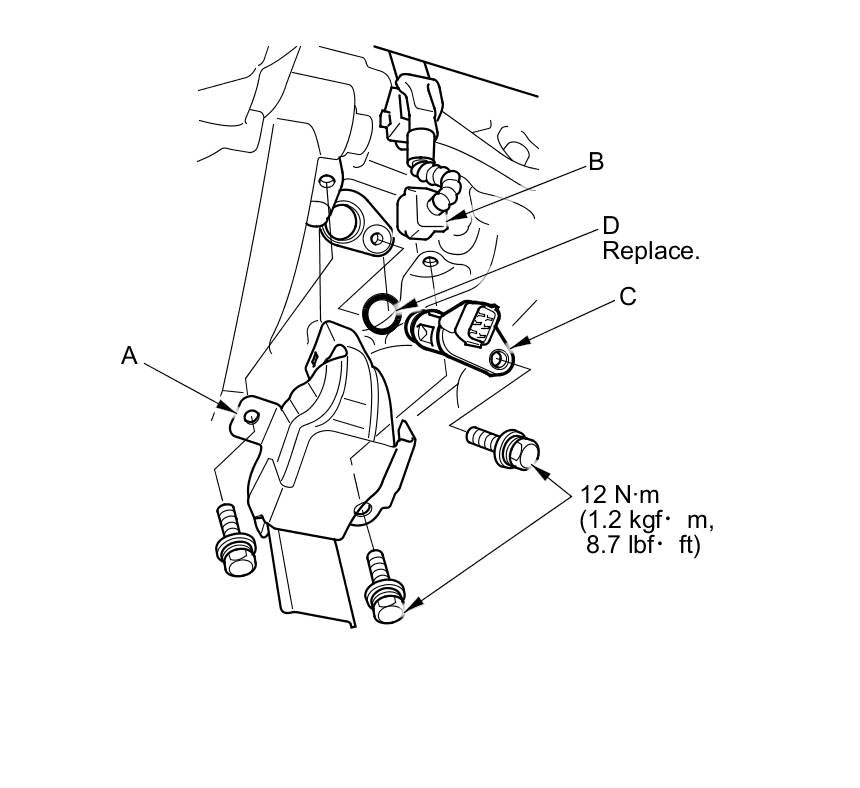 5. Install the parts in the reverse order of removal with a new O-ring (D).