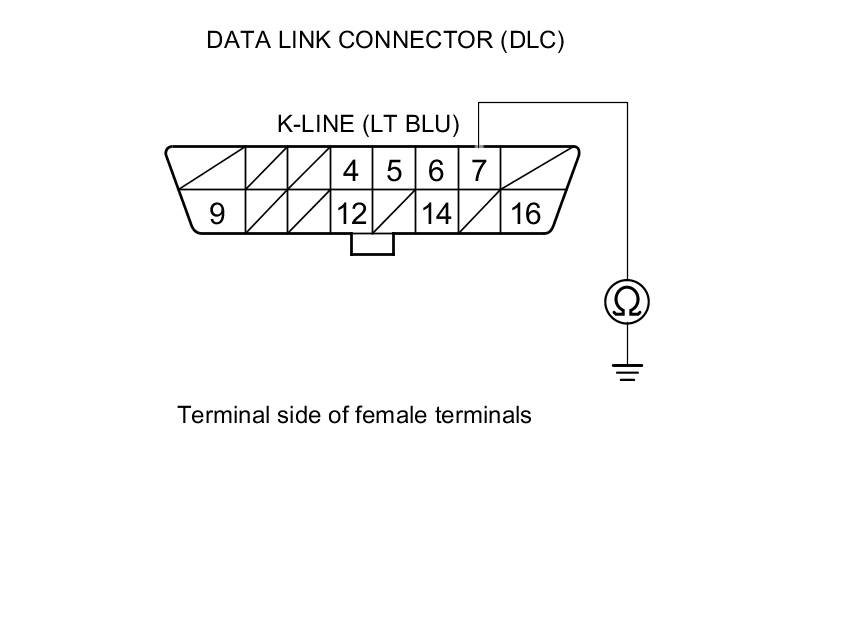 19. Check for continuity between DLC terminal No. 7 and body ground.