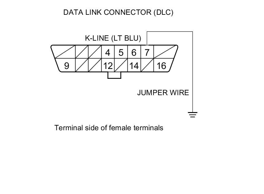 21. Connect DLC terminal No. 7 to body ground with a jumper wire.