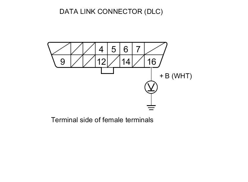 26. Measure the voltage between DLC terminal No. 16 and body ground.