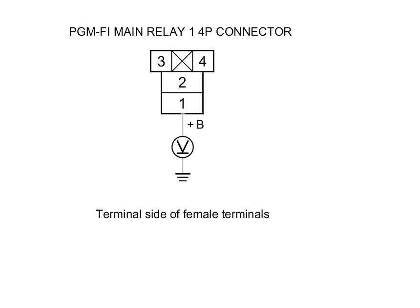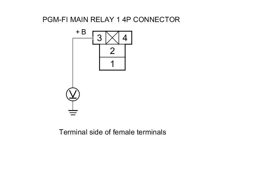 71. Measure the voltage between PGM-FI main relay 1 4P connector terminal No. 1 and body ground.