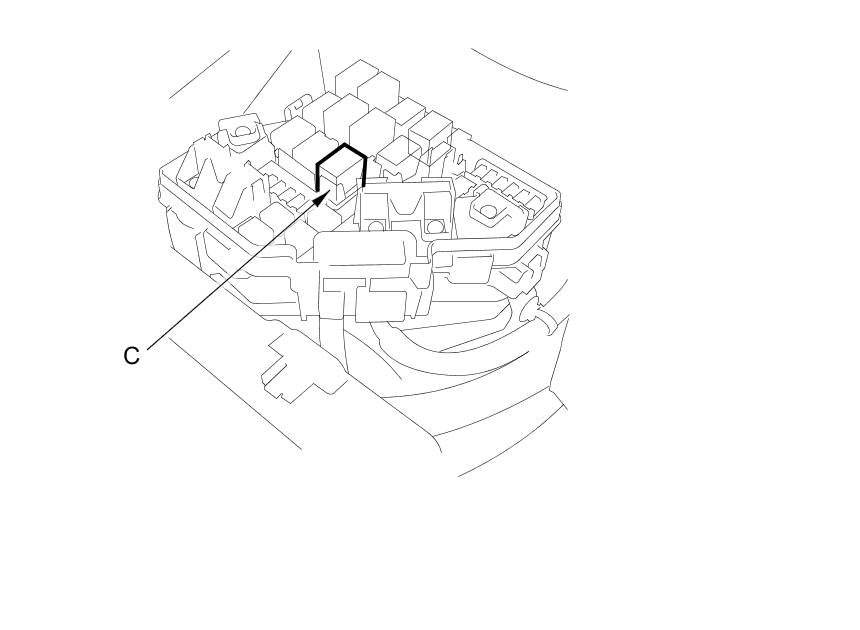 66. Remove PGM-FI main relay 1 (C) from the under-hood fuse/relay box.