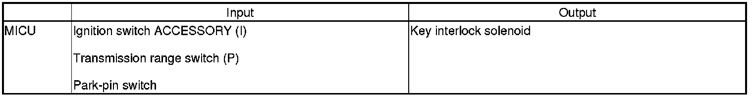 The MICU controls the key interlock solenoid based on the ignition switch ACCESSORY (l) position, the transmission range switch (P), and the park-pin switch inputs.