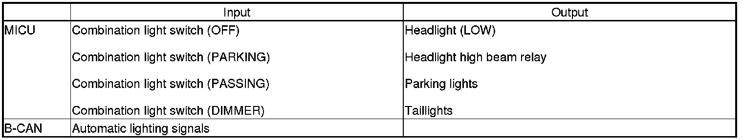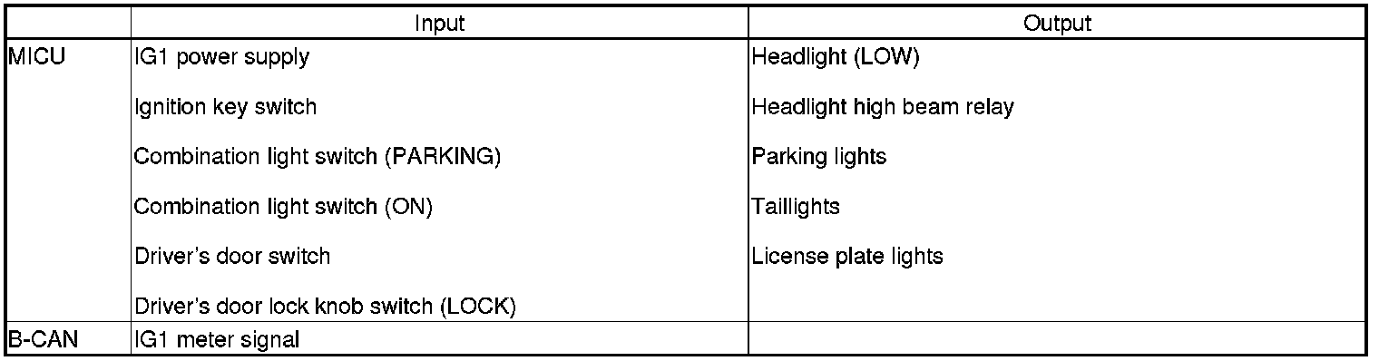 The MICU controls the headlight auto-off function based on inputs from each switch.