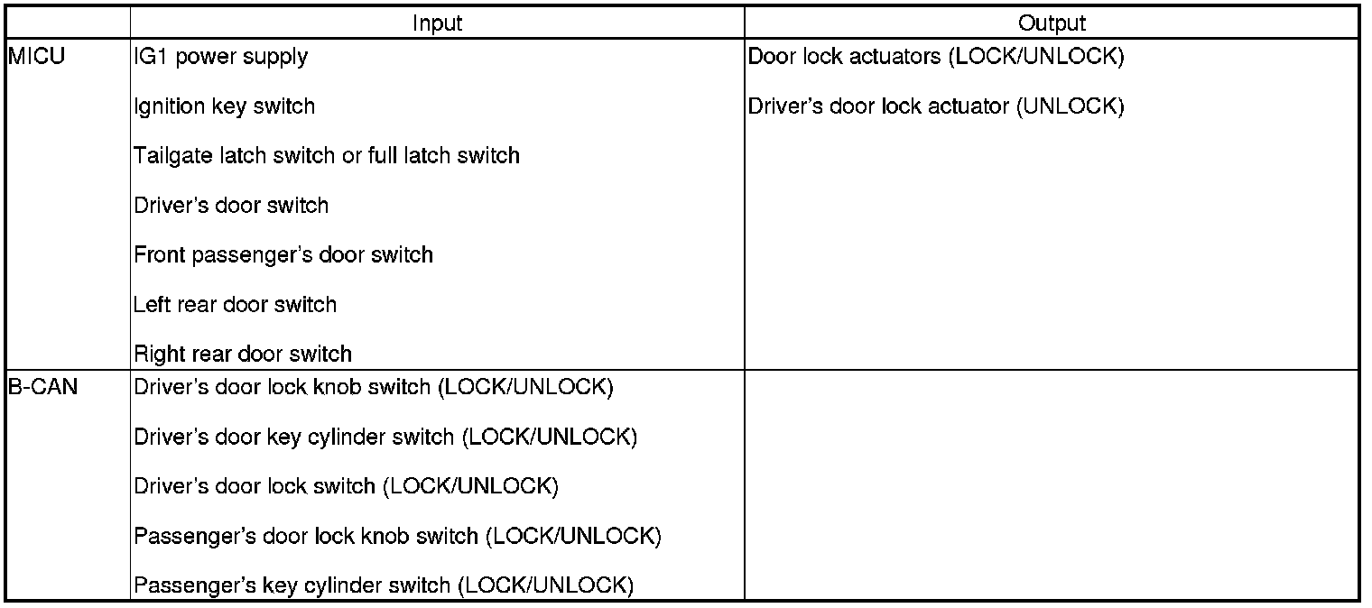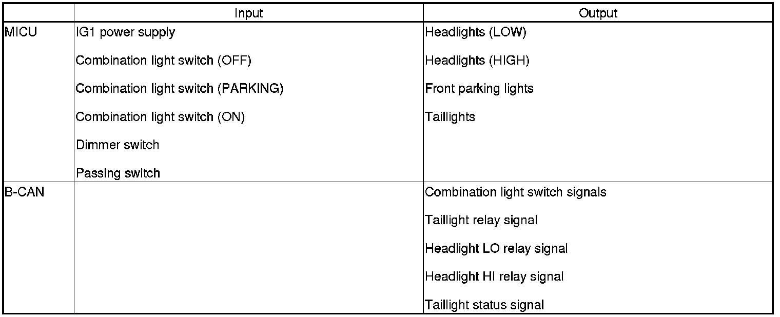 When any of the data from the B-CAN circuit cannot be received within a specified time, or an unusual combination of data is recognized, the MICU enters the software fail-safe mode. The data that cannot be received is assigned a pre-programmed value.