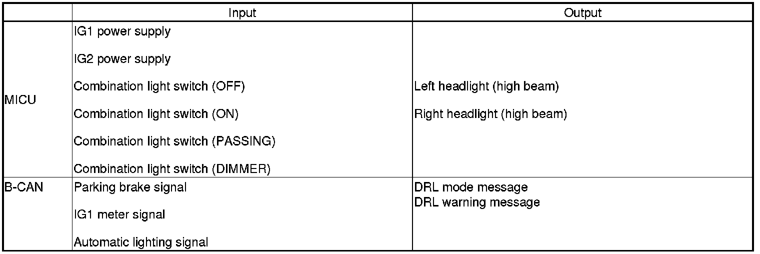 The MICU controls the headlights as daytime running lights based on inputs from each switch.