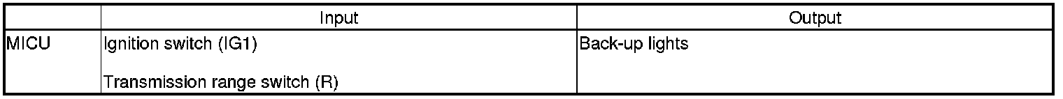 The MICU controls the back-up lights based on the ignition switch (IG1) and the transmission range switch (R) inputs.