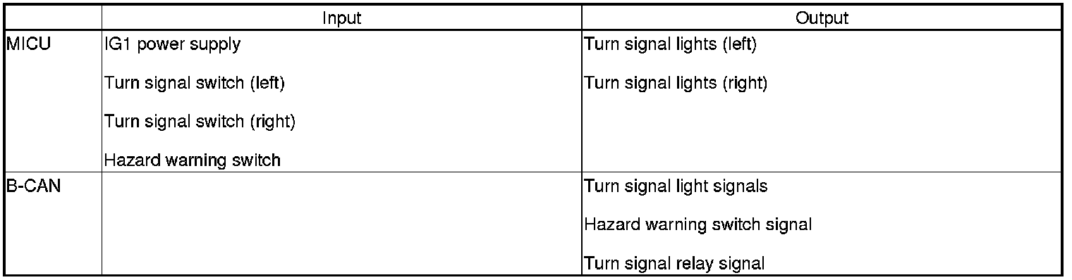 The MICU controls the turn signal/hazard warning lights based on inputs from the turn signal switch and the hazard warning switch.