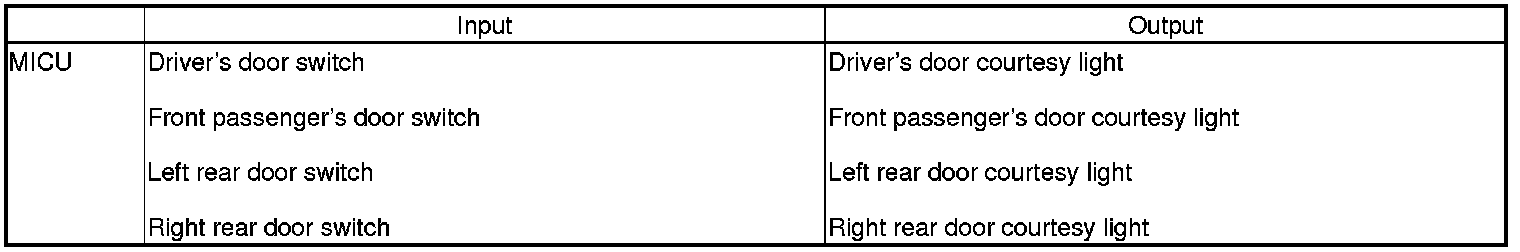 The MICU controls the door courtesy lights based on inputs from the door switches.