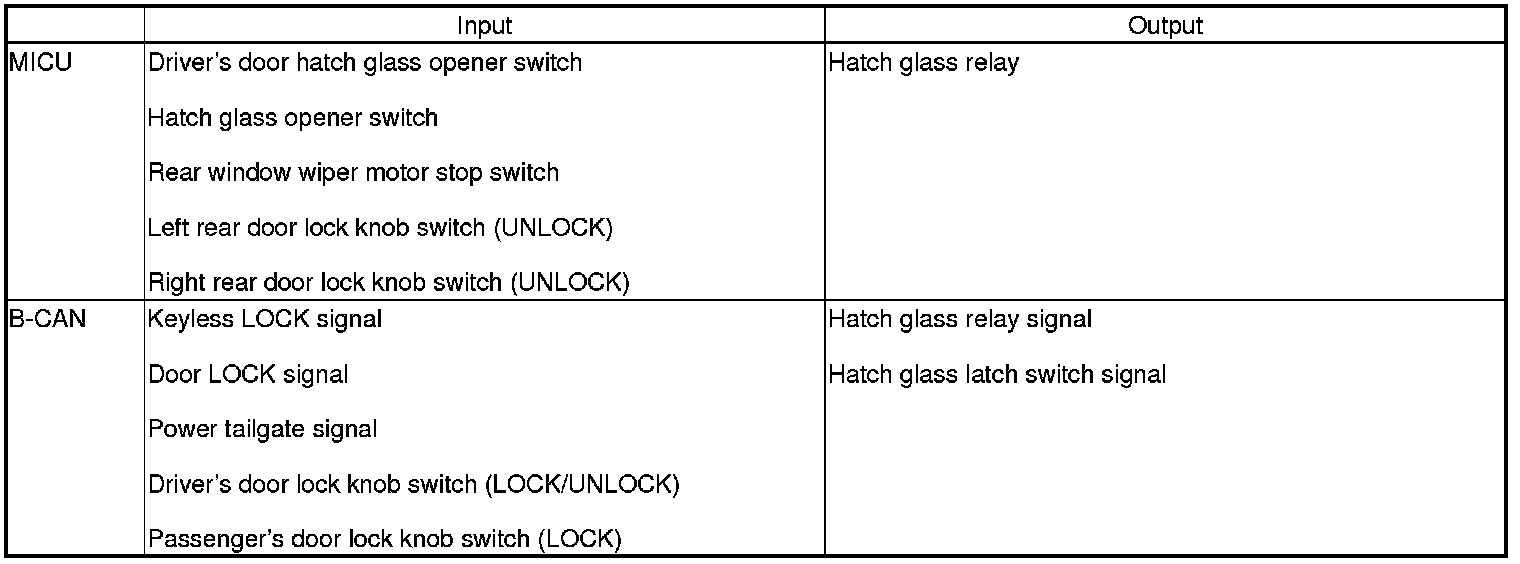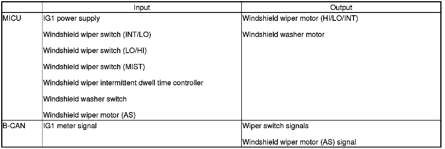 The MICU controls the windshield and rear window washer motor based on the IG1, the washer switches and hatch glass latch switch inputs.