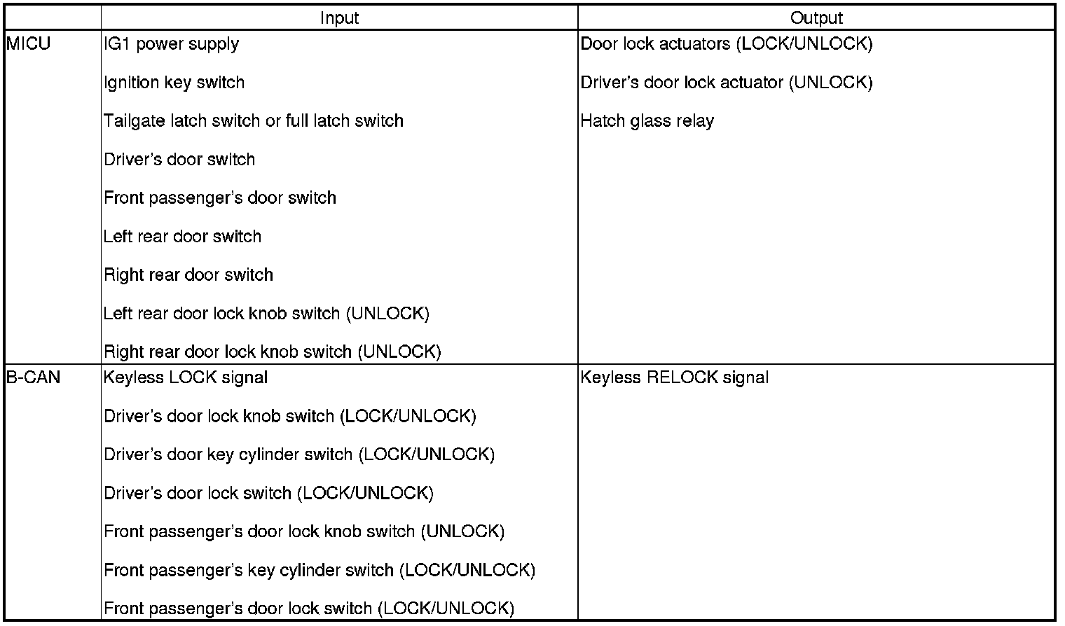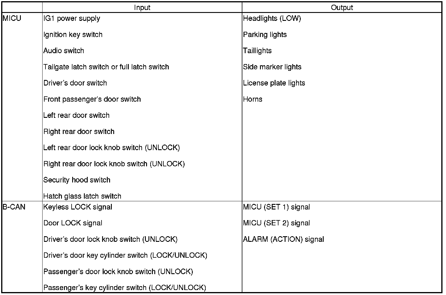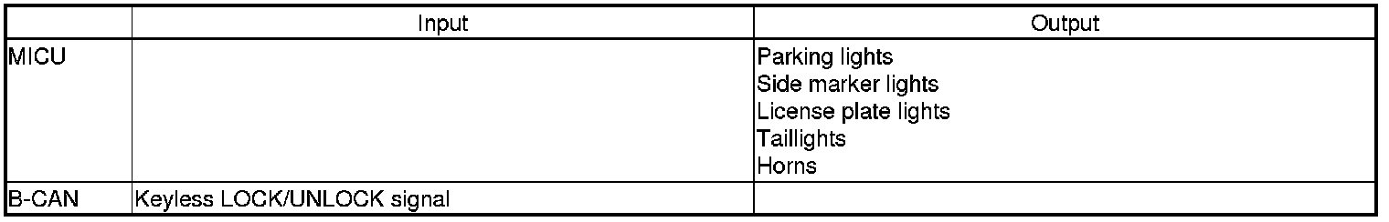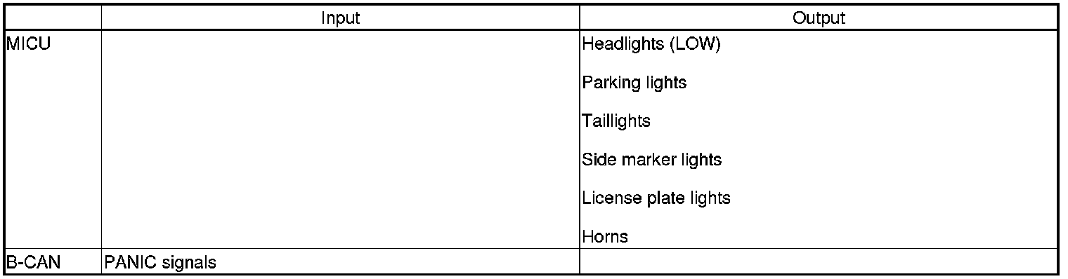 The MICU controls the keyless PANIC operation based on signals sent by B-CAN.