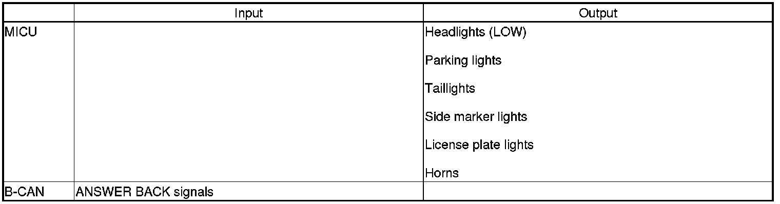 The MICU controls the lighting system and horns based on keyless signals sent by B-CAN.