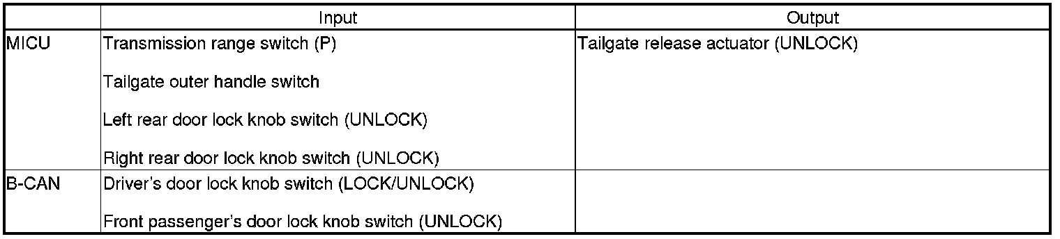 Tailgate Outer Handle Switch Operation (Unlock all doors and tailgate at the same time)