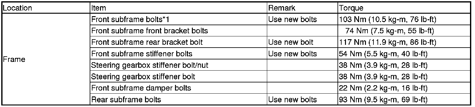 *Refer to the each S/M section for the bolts/nuts not indicated here.