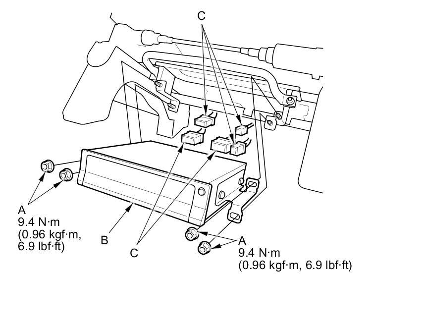 4. Remove the nuts (A), then pull out the navigation unit (B).