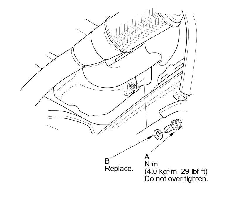 3. Reinstall the drain bolt with a new washer (B).