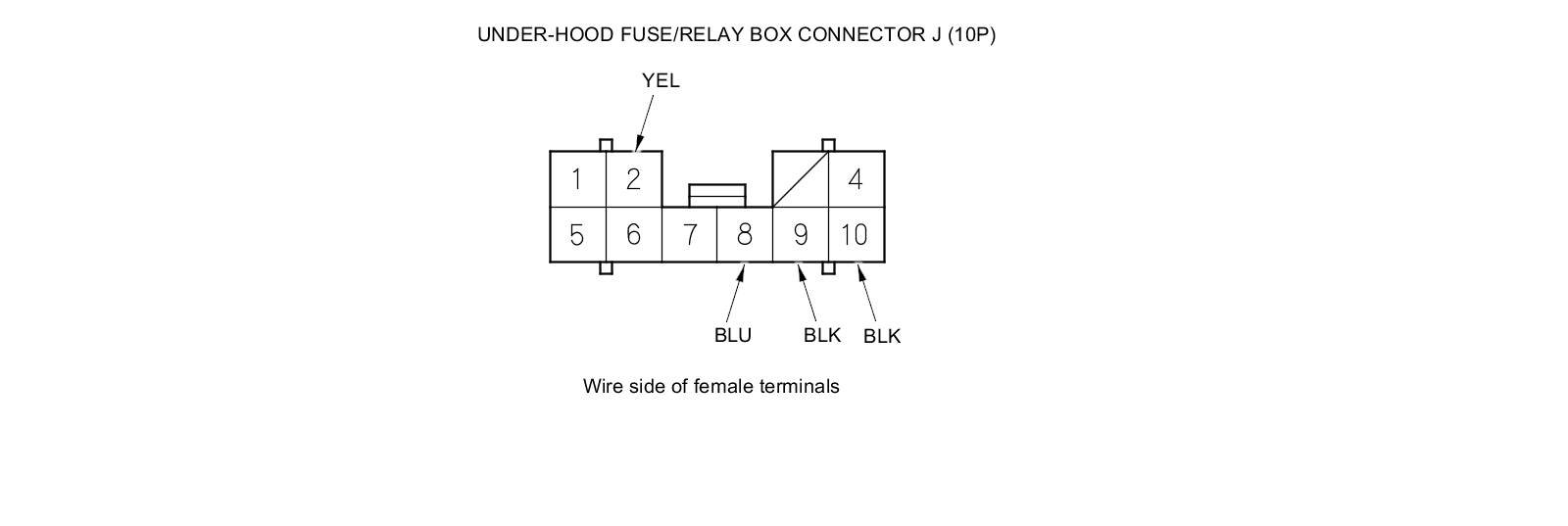 5. Disconnect under-hood fuse/relay box connector J (10P).