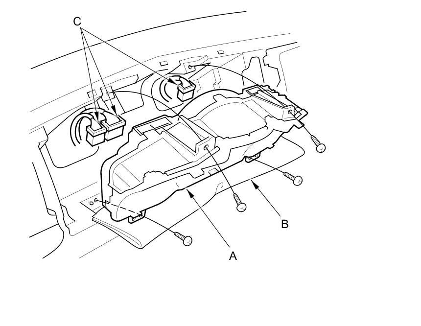 3. Disconnect the connectors (C), and remove the gauge control module.