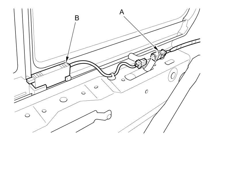2. Disconnect the 2P connector (A) from the back power window position switch (B).