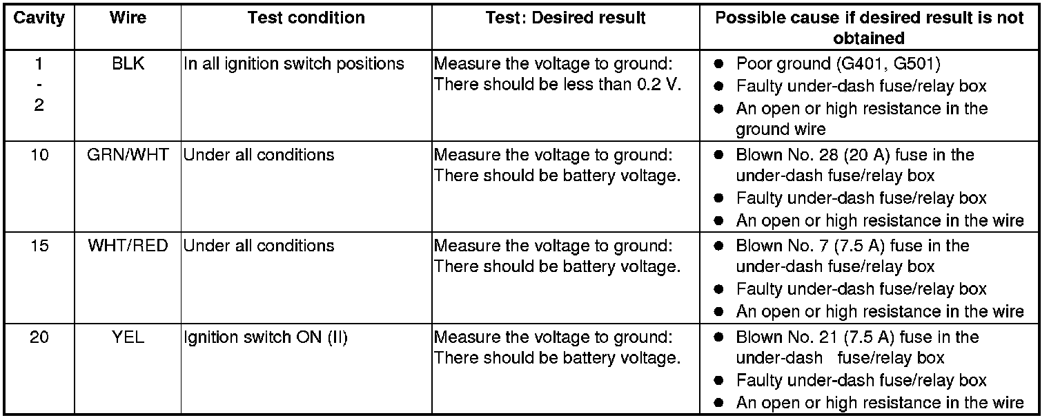 6. With the connector still disconnected, do the following input tests: