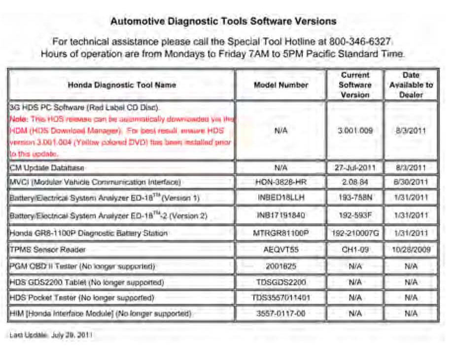 For questions about the Honda-supplied updating equipment, call American Hondas Special Tools hotline.