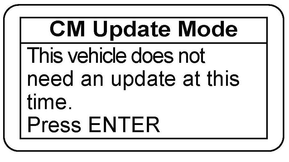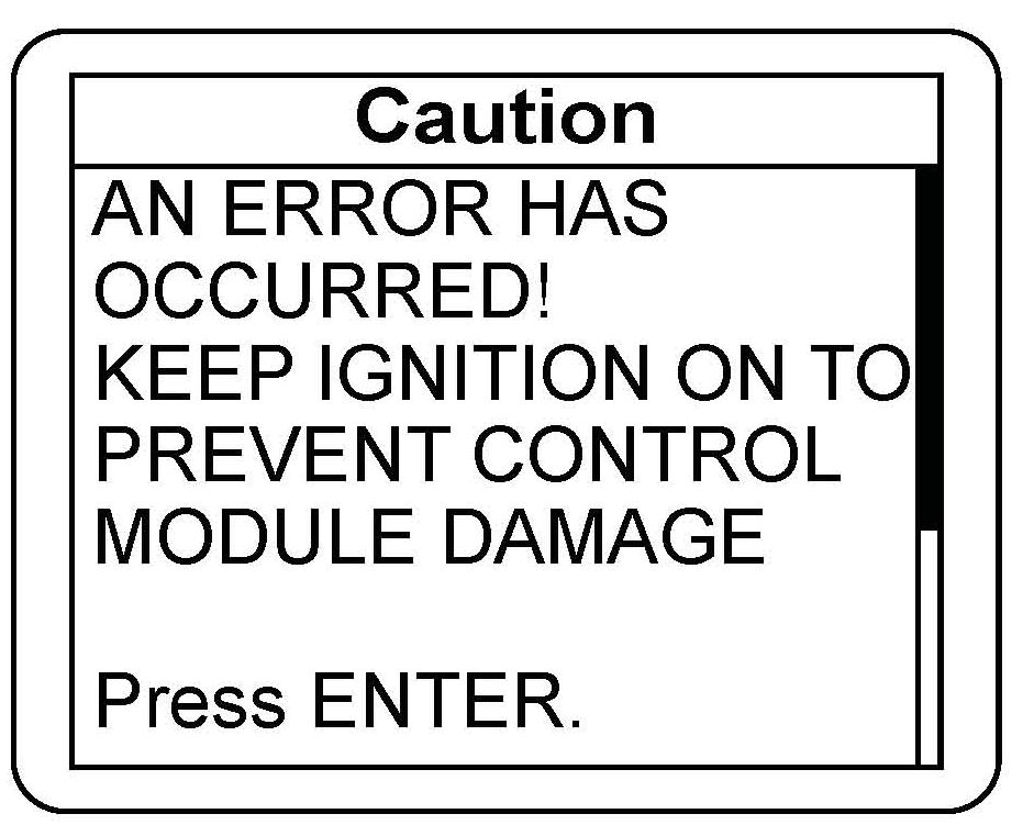 16. If an error occurs during the updating procedure, an error message appears. Keep the ignition switch in ON (II). Press ENTER to display the error code. Refer to the CM Update Error Code Table in the MVCI User Guide for mor information about the code and its solutions.