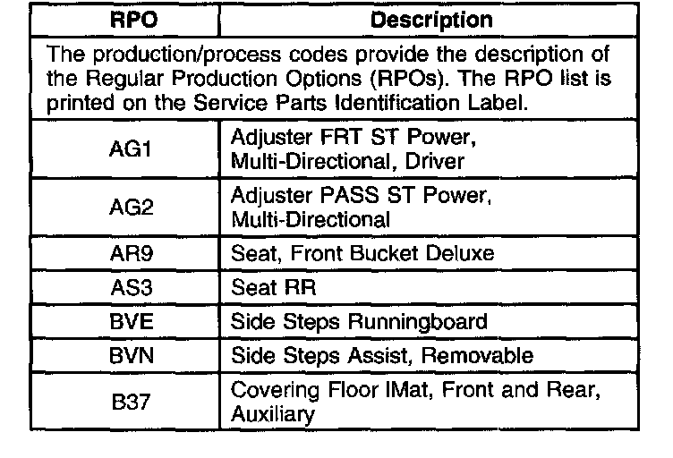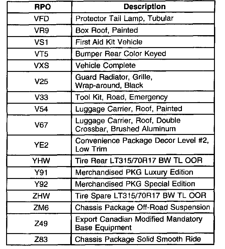 RPO Code List Part 1: