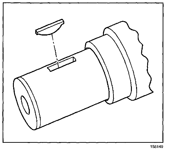2. Tap the key (1) into the keyway until both ends of the key bottom onto the crankshaft.