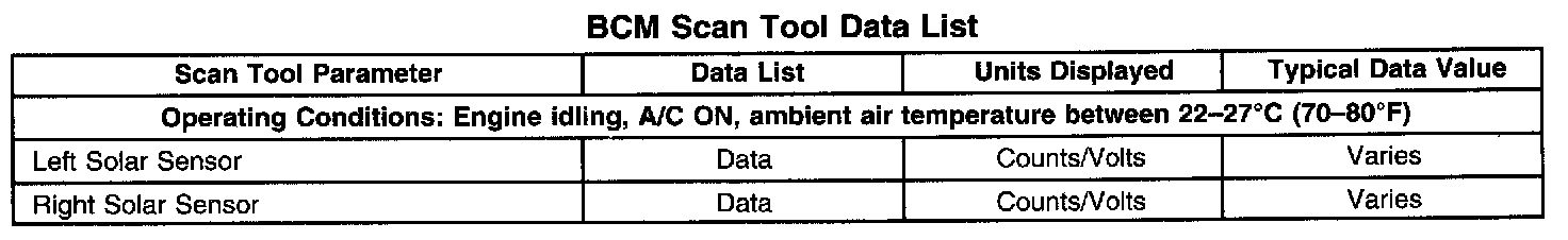 BCM Scan Tool Data List: