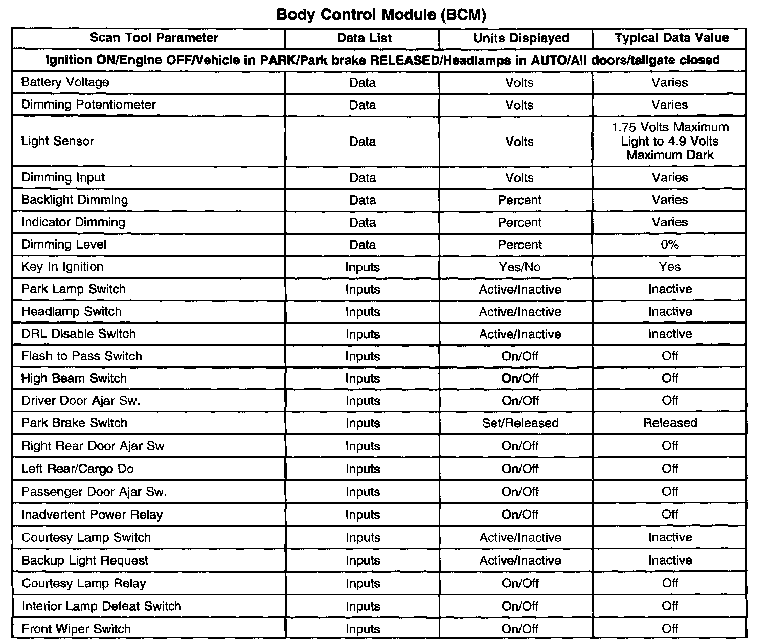 Body Control Module (BCM):