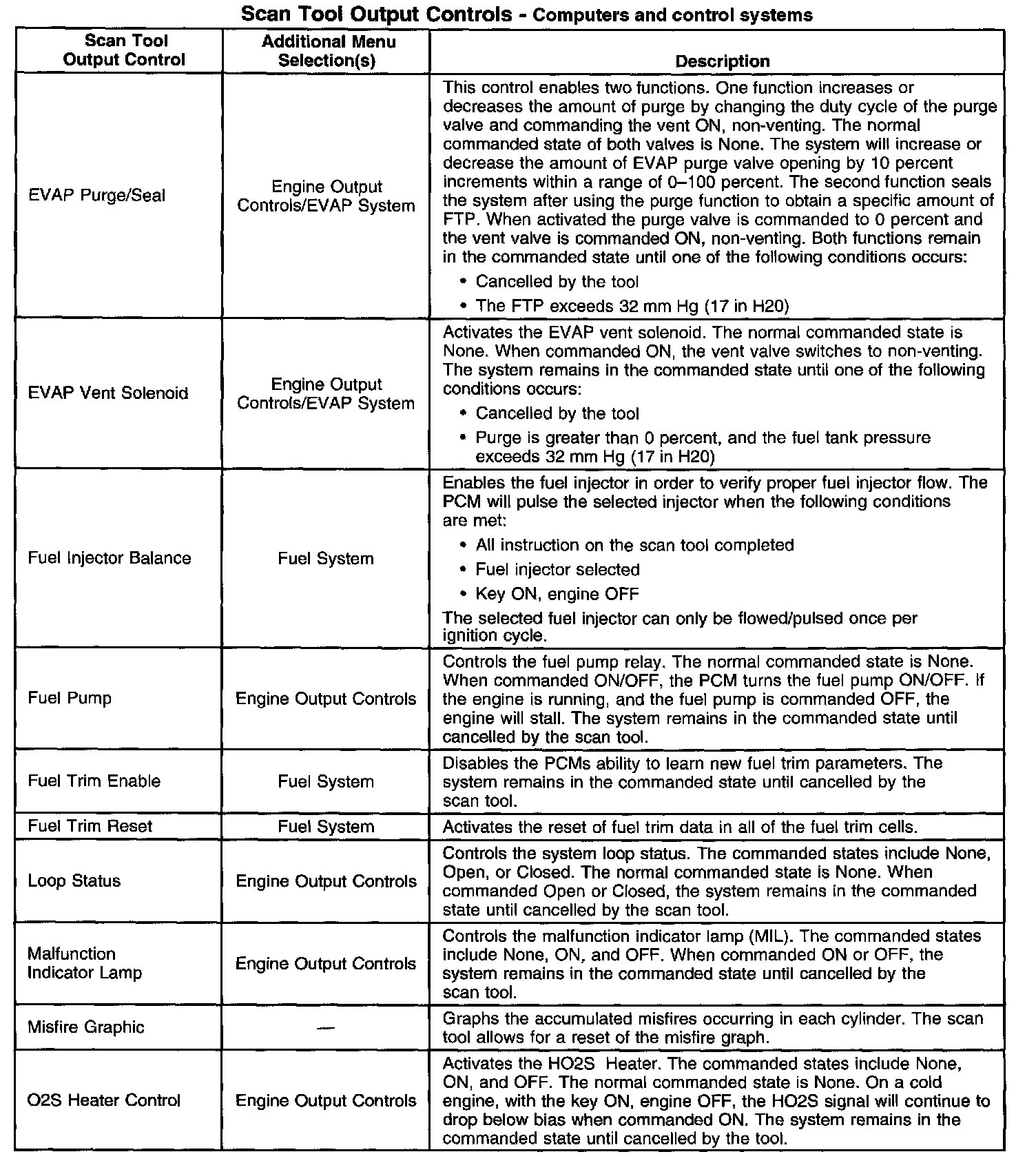Scan Tool Output Controls