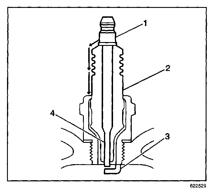 - Inspect for the correct spark plug torque. Insufficient torque can prevent correct spark plug operation. An over torqued spark plug, causes the insulator (2) to crack.