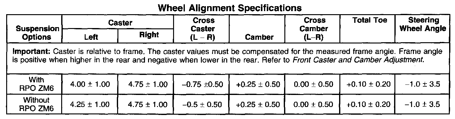 Wheel Alignment Specifications
