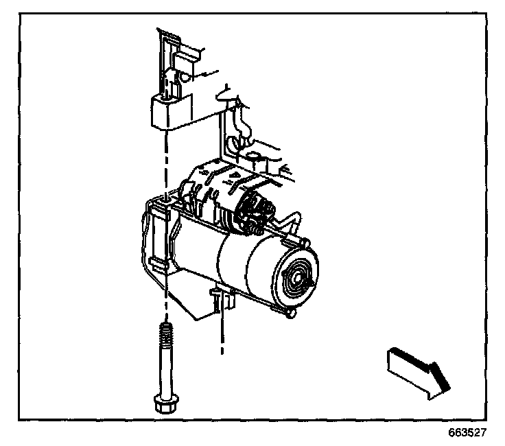 7. Slide the starter forward until the starter clears the transmission.